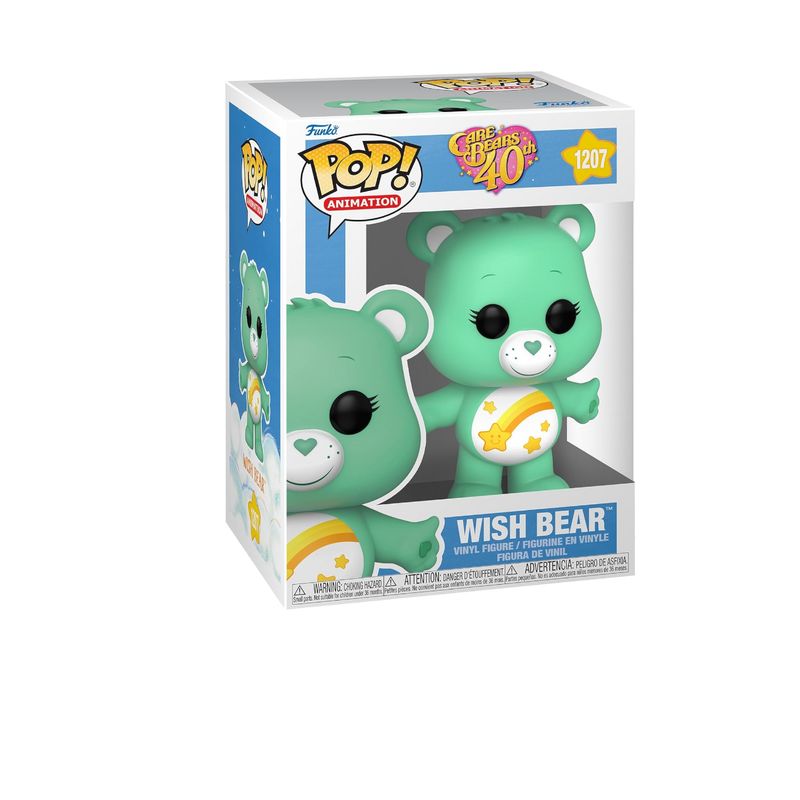 Celebrate the 40th anniversary of Care Bears with this adorable Wish Bear Funko Pop! toy. With its vibrant colors and cute design, this collectible figure is a must-have for any Care Bears fan. Add it to your collection and spread the power of wishes and positivity!